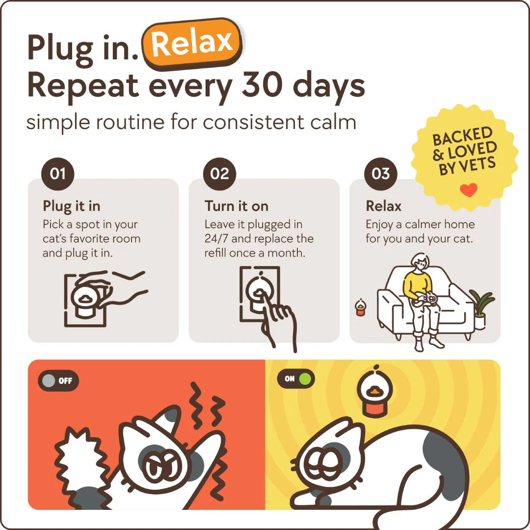 "Our three cats used to fight constantly—hissing, scratching, total chaos. After just a month with this diffuser, they’re so much calmer and living peacefully together. I highly recommend it to any cat owner!"